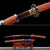 The Blade is Damascus steel Full Tang Blade red, saya (scabbard) solid wood material, Glossy black theme tsuba, solid wood handle