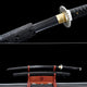 The blades are made of 1095 high carbon steel, sheath is black paint, gold theme tsuba, white ray skin wrap, black cord handle