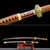 The Blade is made of high steel Full Tang Blade red grinding process, saya (scabbard) is made of solid wood, gold theme tsuba, red ray-skin wrap, brown cord handle