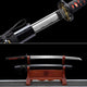Hand lacquered wooden saya protects blade, handsome color scheme.
