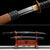 Hand lacquered wooden saya protects blade, handsome color scheme.