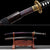 Hand lacquered wooden saya protects blade, handsome color scheme.